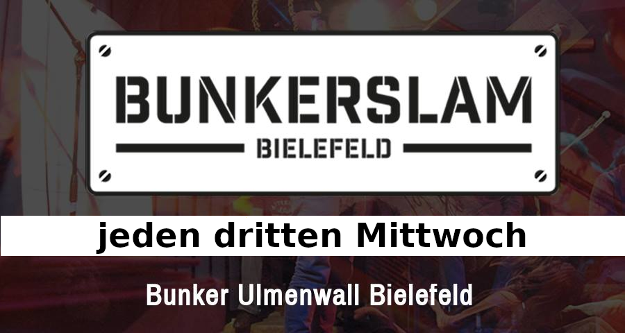 Beim Bunkerslam treten jeden Monat 8 Poet*innen an, die mit Poesie, Wortwitz und Storytelling in Ostwestfalens traditionellstem Poetry Slam um Eure Gunst buhlen. Die Abstimmung liegt dabei komplett in euren Händen, denn die findet ausschließlich mit Applaus statt!